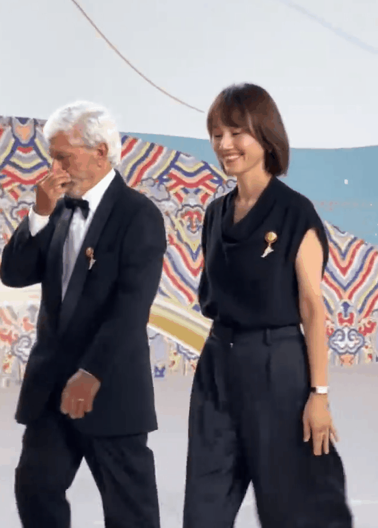 这次她没选择复杂华丽的礼服长裙,而是选择了一套新中式黑丝绒西服套装,繁花刺绣装饰适合她了,贵气但却不艳俗。
