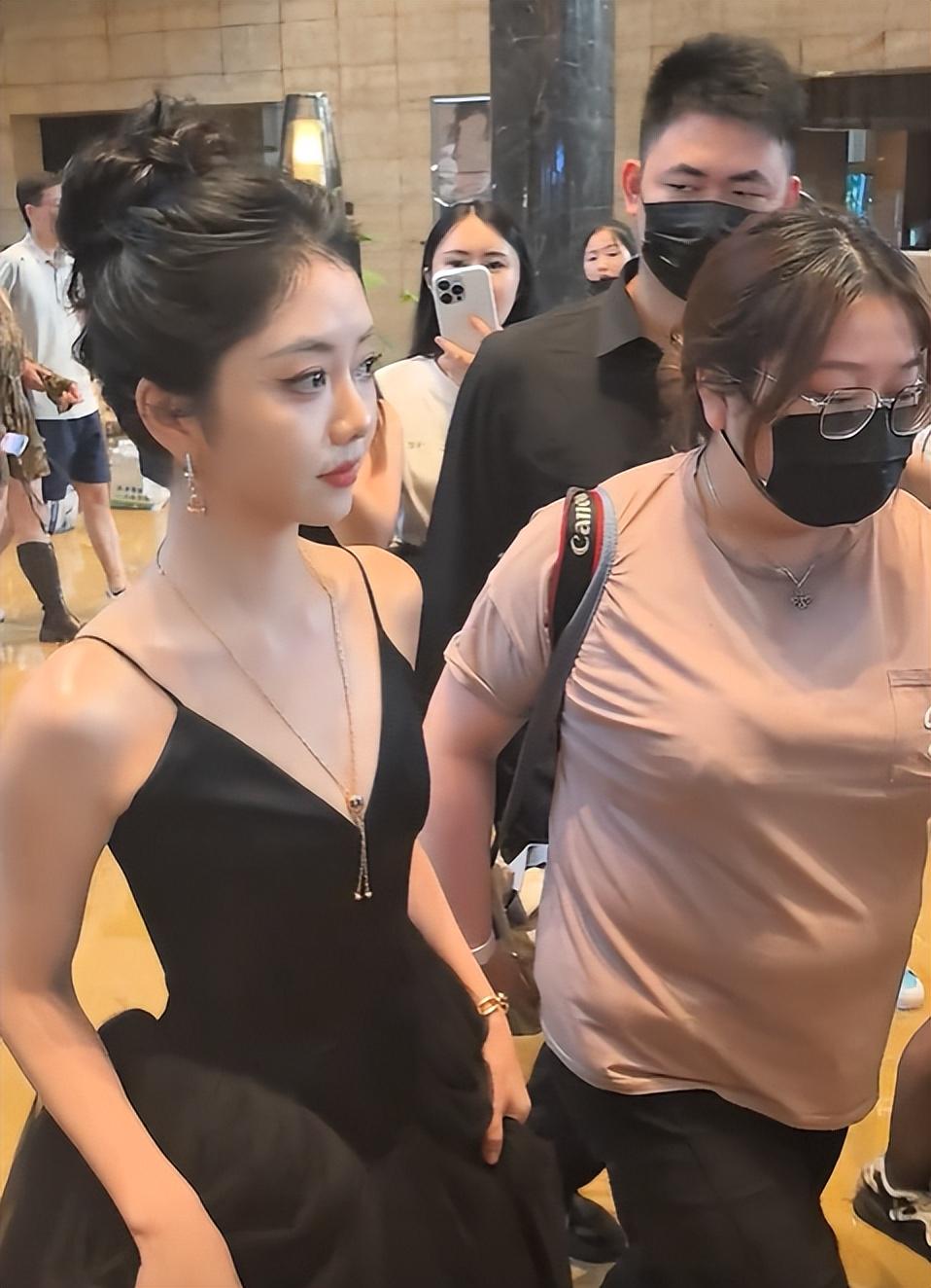 她虽然骨架比较大,但头和脸都特别小,尤其是旁边有其他人的时候,更显得蒋欣美得很独特。