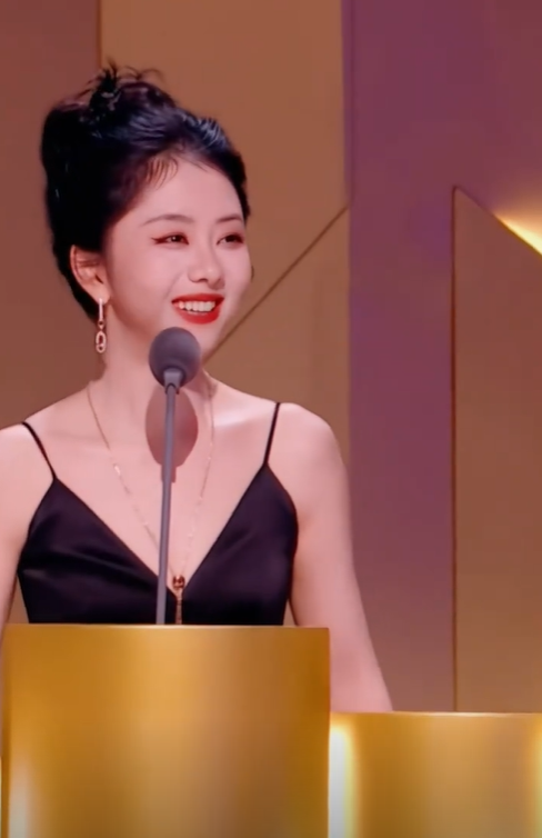 颁奖典礼上,谭松韵与导演康洪雷共同颁发最佳男女配角奖,她也能做到落落大方。